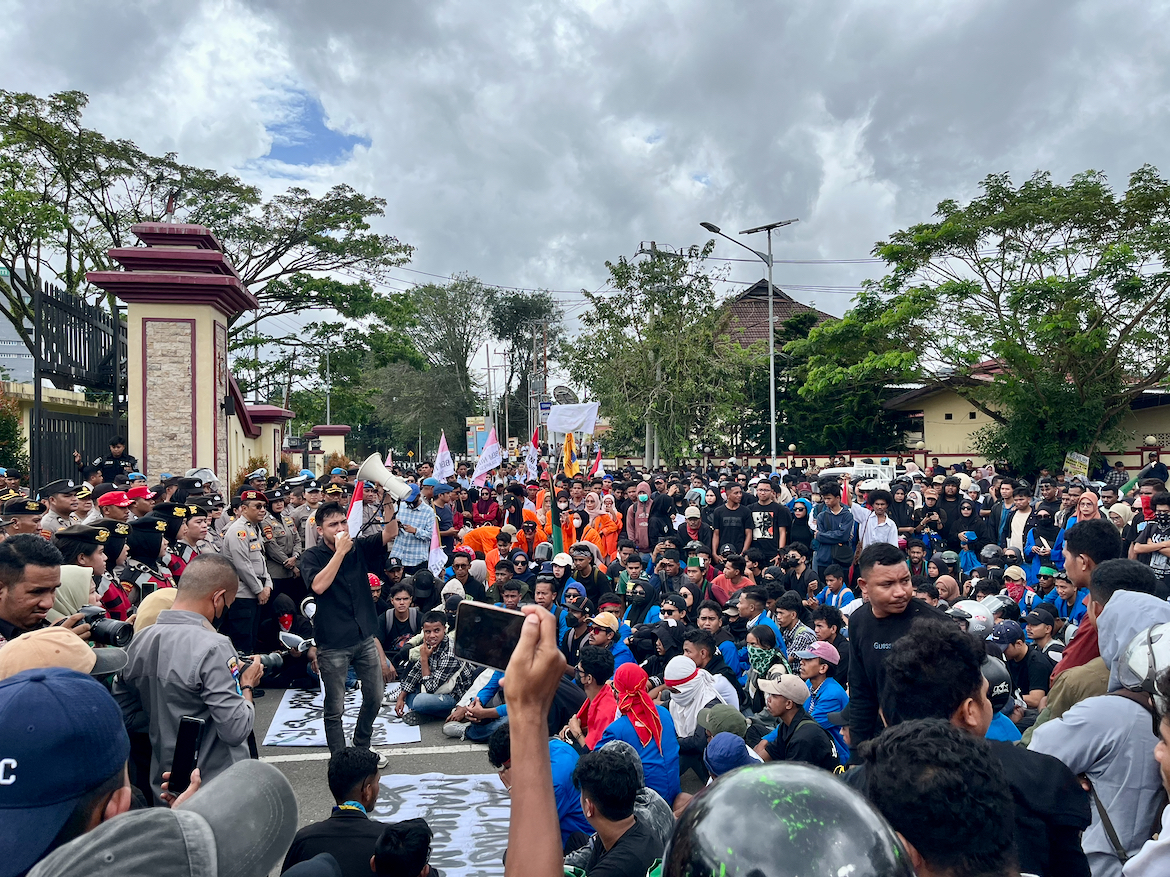 Dalam orasi pembuka, perwakilan dari Perhimpunan Mahasiswa Hukum Indonesia (Permahi), Randi Samal, menegaskan bahwa aksi yang dilakukan merupakan bentuk protes damai yang sah secara konstitusional.