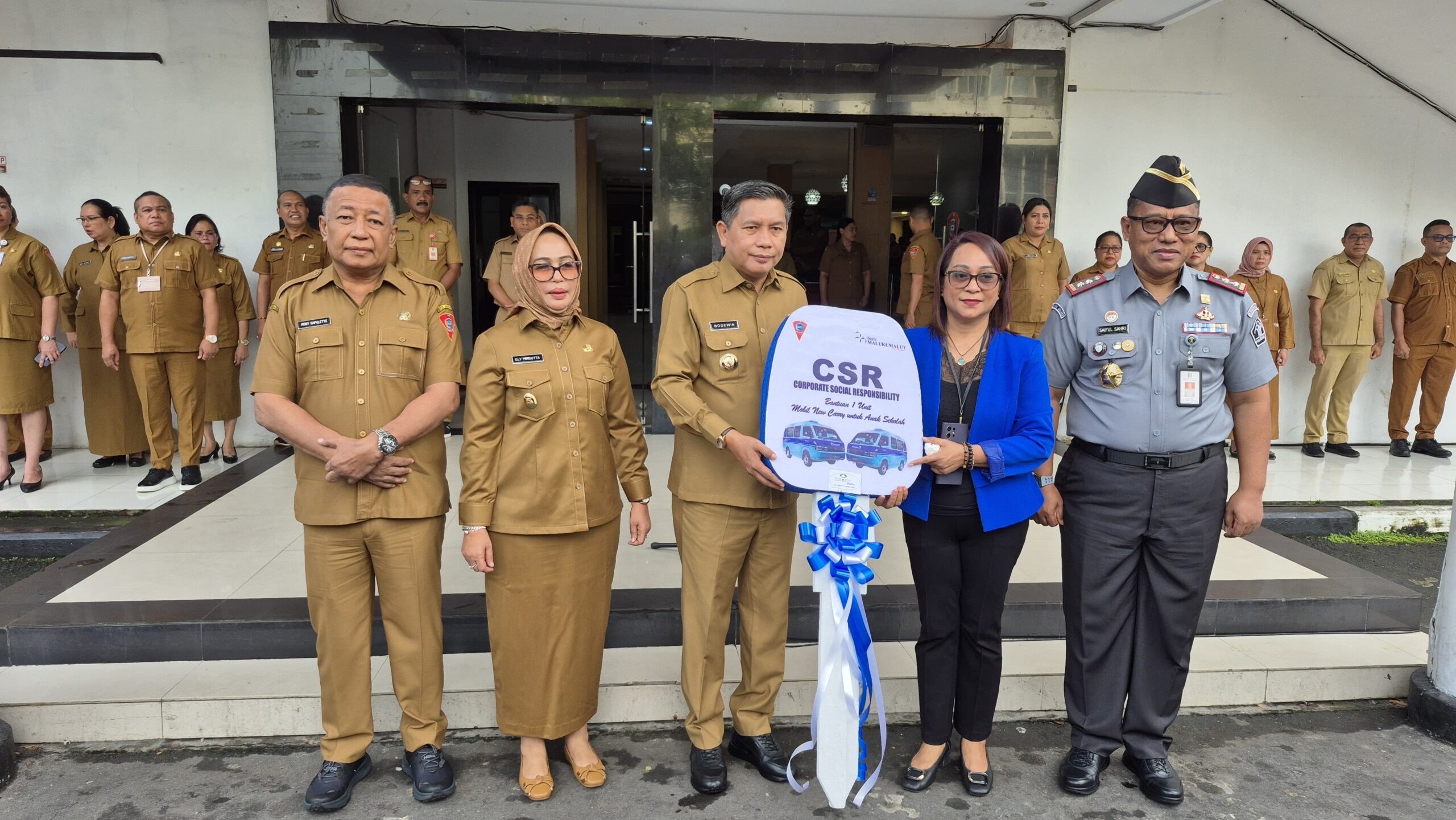 Bank Maluku dan Maluku Utara menyerahkan bantuan satu unit mobil melalui program Corporate Social Responsibility (CSR), yang akan digunakan untuk transportasi anak-anak sekolah. Sementara itu, Kemenkumham Maluku menyerahkan sertifikat Hak Kekayaan Intelektual (HAKI) kepada Pemkot Ambon.