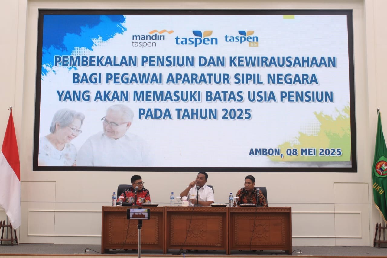 AMBON (info-ambon.com)-Pembekalan Pensiun dan Kewirausahaan Bagi Aparatur Sipil Negara yang Akan Memasuki Batas Usia Pensiun Tahun 2025 secara resmi dibuka oleh Wakil Gubernur Maluku Abdullah Vanath, di Aula Lantai 7 Kantor Gubernur Maluku, Kamis (8/5/2025).