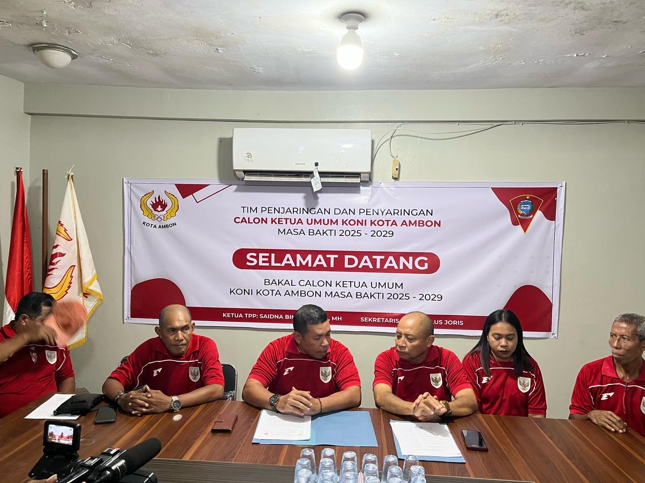 AMBON (info-ambon.com)- Tim Penjaringan dan Panyaringan (TPP) Calon Ketua Umum (Ketum) Komite Olahraga Nasional Indonesia (KONI) Kota Ambon menutup secara resmi proses pendaftaran bakal calon Ketum KONI Kota Ambon periode 2025-2029, Kamis 17 April 2025.
