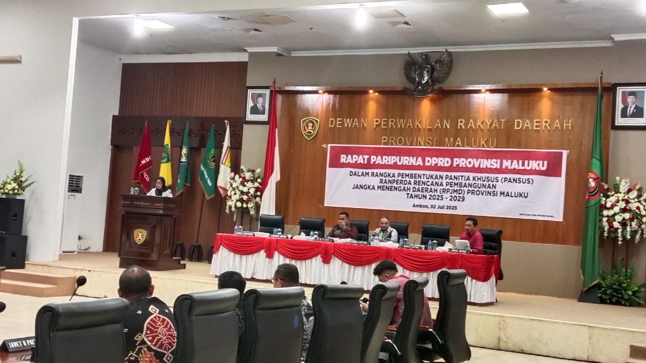 AMBON (info-ambon.com)-Dewan Perwakilan Rakyat Daerah (DPRD) Provinsi Maluku resmi membentuk Panitia Khusus (Pansus) untuk membahas Rancangan Peraturan Daerah (Ranperda) tentang Rencana Pembangunan Jangka Menengah Daerah (RPJMD) Provinsi Maluku tahun 2025–2029. Pembentukan pansus itu diputuskan dalam rapat paripurna yang digelar di Ruang Sidang Paripurna DPRD Provinsi Maluku, Rabu (3/7/2025).
