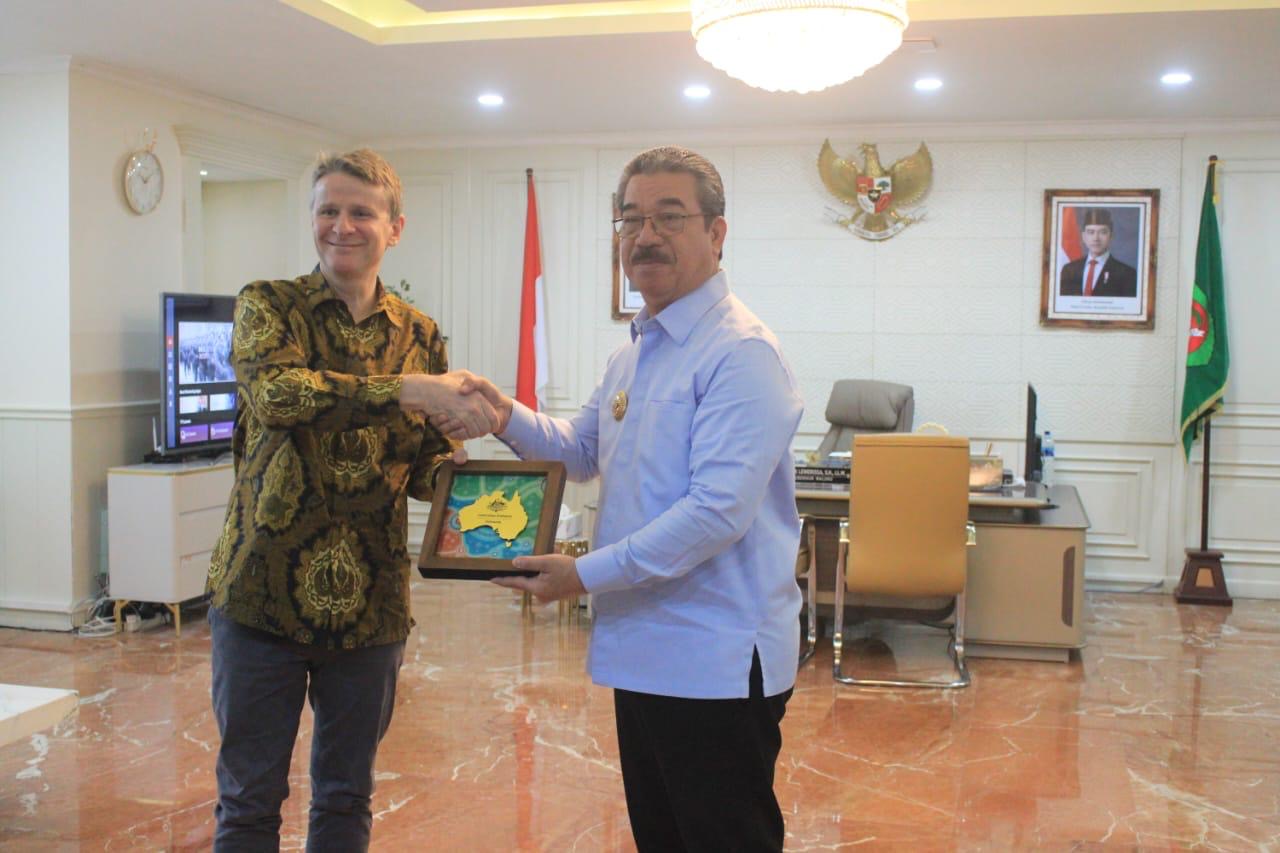 AMBON (info-ambon.com)-Gubernur Maluku Hendrik Lewerissa menerima Kunjungan Duta Besar (Dubes) Australia untuk Indonesia Rod Brazier bahas Kerjasama bilateral antara Australia dan Maluku di ruang rapat Gubernur Maluku, Senin (20/10/2025).
