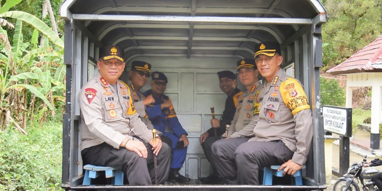 Di tengah perjalanan menggunakan mobil pick up, Kapolda menyempatkan waktu melihat situs-situs sejarah dan juga PLN. Kemudian dilanjutkan menuju Mapolsek Nusalaut.