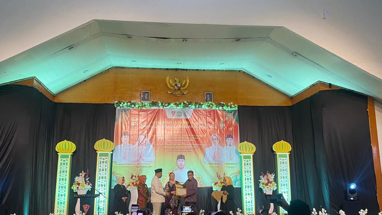 Hal tersebut disampaikan dalam acara Gema Budaya Islami Season II dan Halal Bihalal Sanggar Al-Muzaffar yang dirangkaikan dengan penyerahan “Golden Ticket” serta piagam penghargaan kepada peserta audisi LASQI tingkat Kecamatan Sirimau dan Nusaniwe, Senin (20/4/2026) malam di Gedung Azhari Al-Fatah.