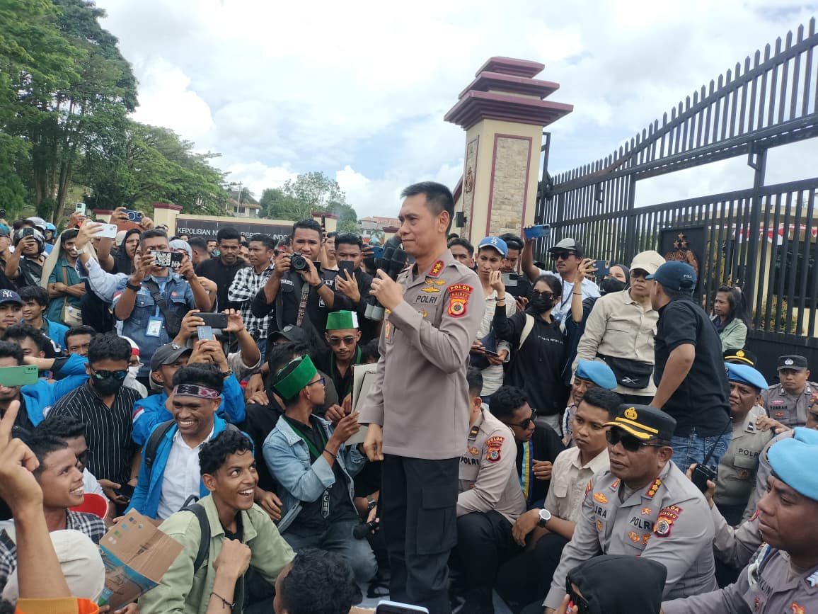 AMBON (info-ambon.com)-Kepala Kepolisian Daerah (Kapolda) Maluku, Irjen Pol Dadang Hartanto, secara langsung menemui massa aksi dari Aliansi Rakyat Maluku yang menggelar demonstrasi di depan Mapolda Maluku, Senin (1/9/2025). Dalam kesempatan tersebut, Kapolda menyampaikan komitmennya untuk mendengar dan menindaklanjuti aspirasi para mahasiswa.