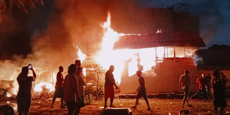 AMBON (info-ambon.com)- Kebakaran menghanguskan 10 rumah warga di Kelurahan Benteng, Gudang Arang, RT/RW 003/006, Kecamatan Nusaniwe, Kota Ambon sekitar pukul 05.00 WIT, Minggu (29/10/2023).