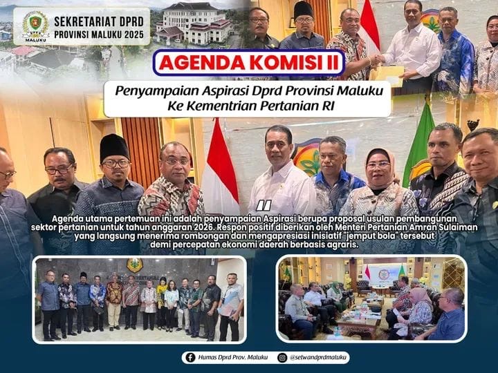 Komisi II DPRD Provinsi Maluku, misalnya dipimpin Wakil Ketua DPRD Provinsi Maluku, Johan Lewerissa, bersama Kadis Pertanian. Provinsi Maluku, melakukan pertemuan dengan Menteri Pertanian RI, Andi Amran Sulaiman, Kamis (22/1/2026).