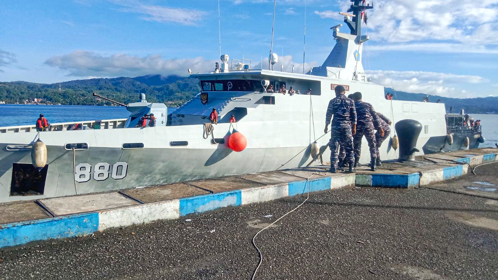 AMBON (info-ambon.com)-Dalam rangka menjalankan misi Operasi Tameng Papua-26, unsur Satuan Kapal Cepat Koarmada III, KRI Hampala-880 kembali bersandar di Dermaga Irian Kodaeral IX, Halong, Kec. Baguala, Kota Ambon, Rabu (4/2/2026).