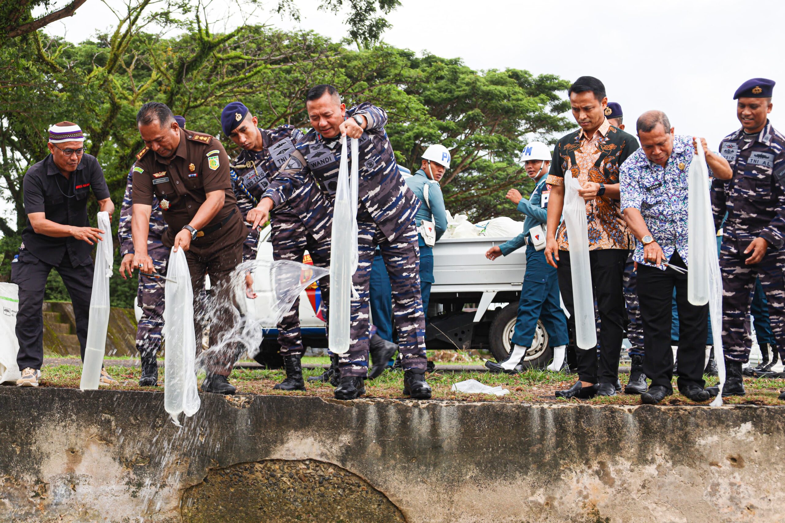 AMBON (info-ambon.com)- Komando Pangkalan Utama TNI Angkatan Laut (Danlantamal IX) Ambon, Brigadir Jenderal TNI (Mar) Suwandi, S.A.P., M.M., memimpin pemusnahan 1,4 ton minuman keras (miras) jenis sopi ilegal yang disita dalam operasi pengamanan di Pelabuhan Ferry Hunimua, Liang, Kamis (27/2/2025). Pemusnahan dilakukan di halaman Mako Lantamal IX Ambon, Negeri Halong, Kecamatan Baguala, Kota Ambon.