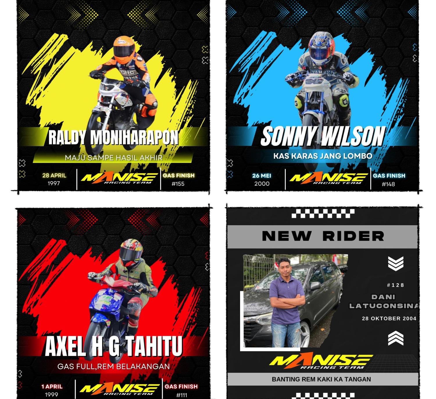 Keempat pembalap yang di terjunkan yakni Raldy Moniharapon, Soni Wilson Soekardi, Axel Tahitu dan Dhani.