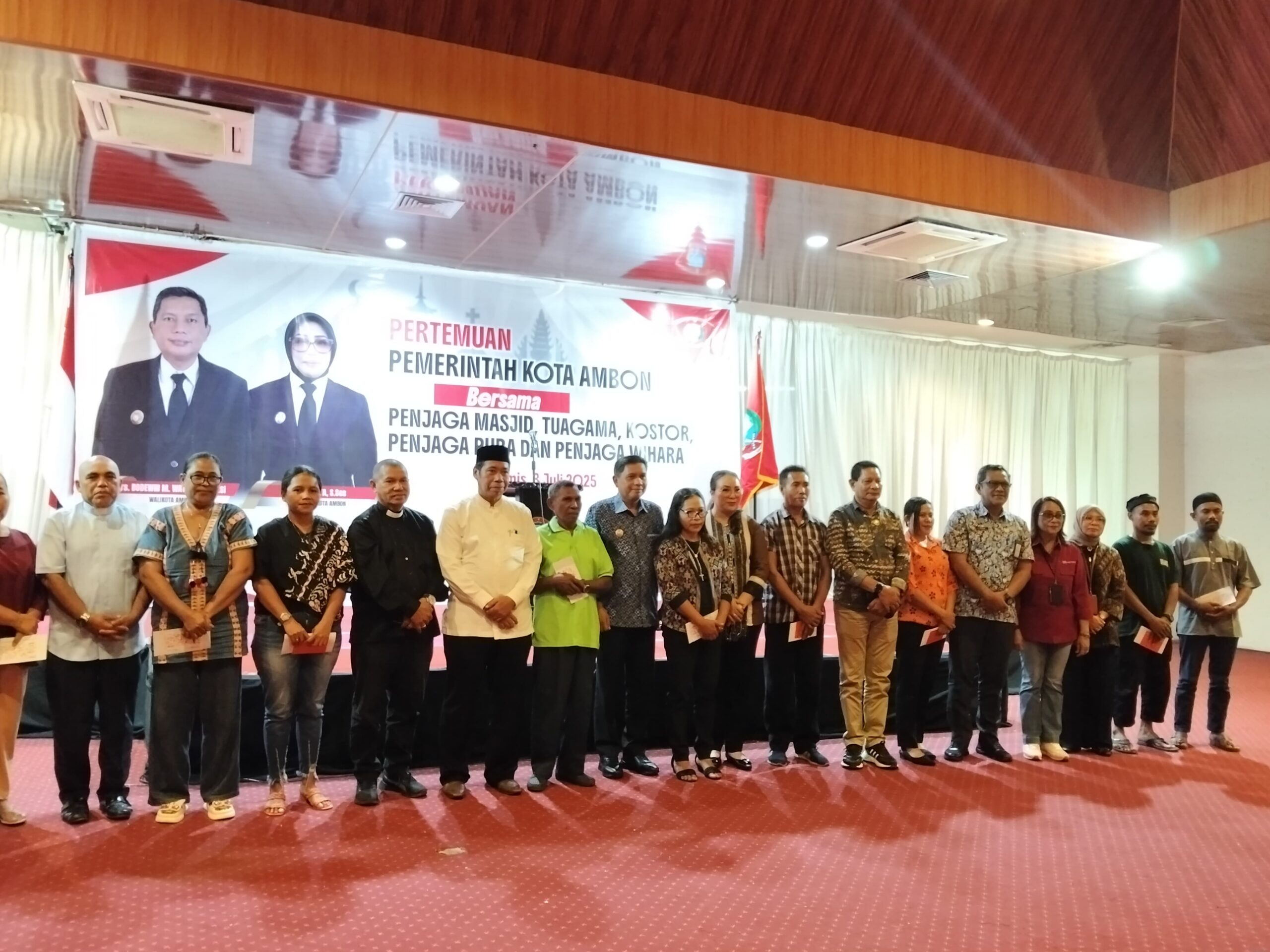 Penyerahan insentif tersebut dilakukan dalam pertemuan bersama ratusan penjaga masjid, tuagama, kostor gereja, serta penjaga pura dan wihara di salah satu Pusat Perbelanjaan di Kota Ambon, Kamis (3/7/2025).