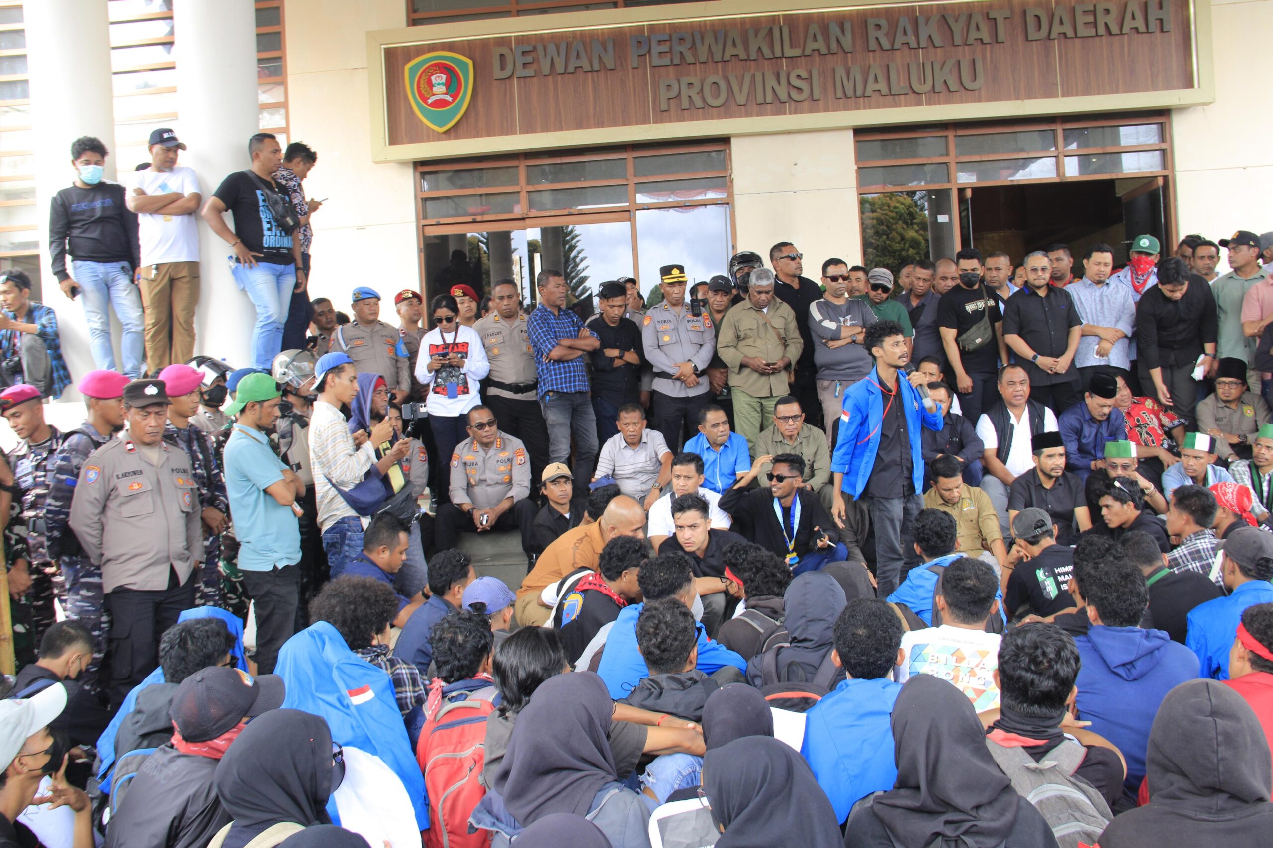 Para unjuk rasa diterima lansung Ketua DPRD Provinsi Maluku, Benhur G Watubun, Wakil Ketua I DPRD Maluku Fauzan Rahawarin, dan sejumlah Anggota DPRD.