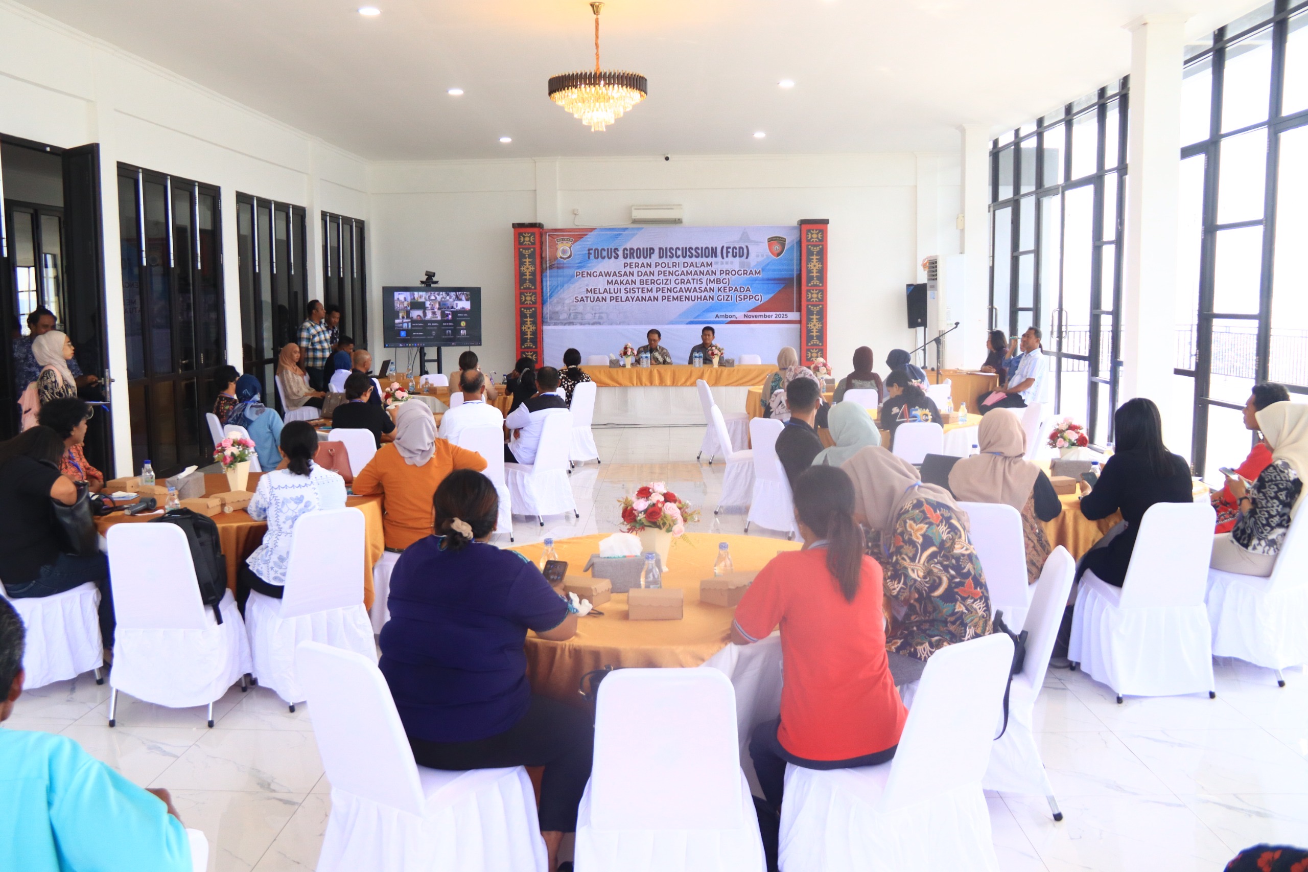 FGD yang digelar tersebut menghadirkan peserta dari perwakilan SPPG Polda Maluku, Poltekkes Kemenkes Maluku, Dinas Kesehatan Kota Ambon, serta para guru dari sekolah penerima manfaat program MBG, mulai dari jenjang TK hingga SMK.