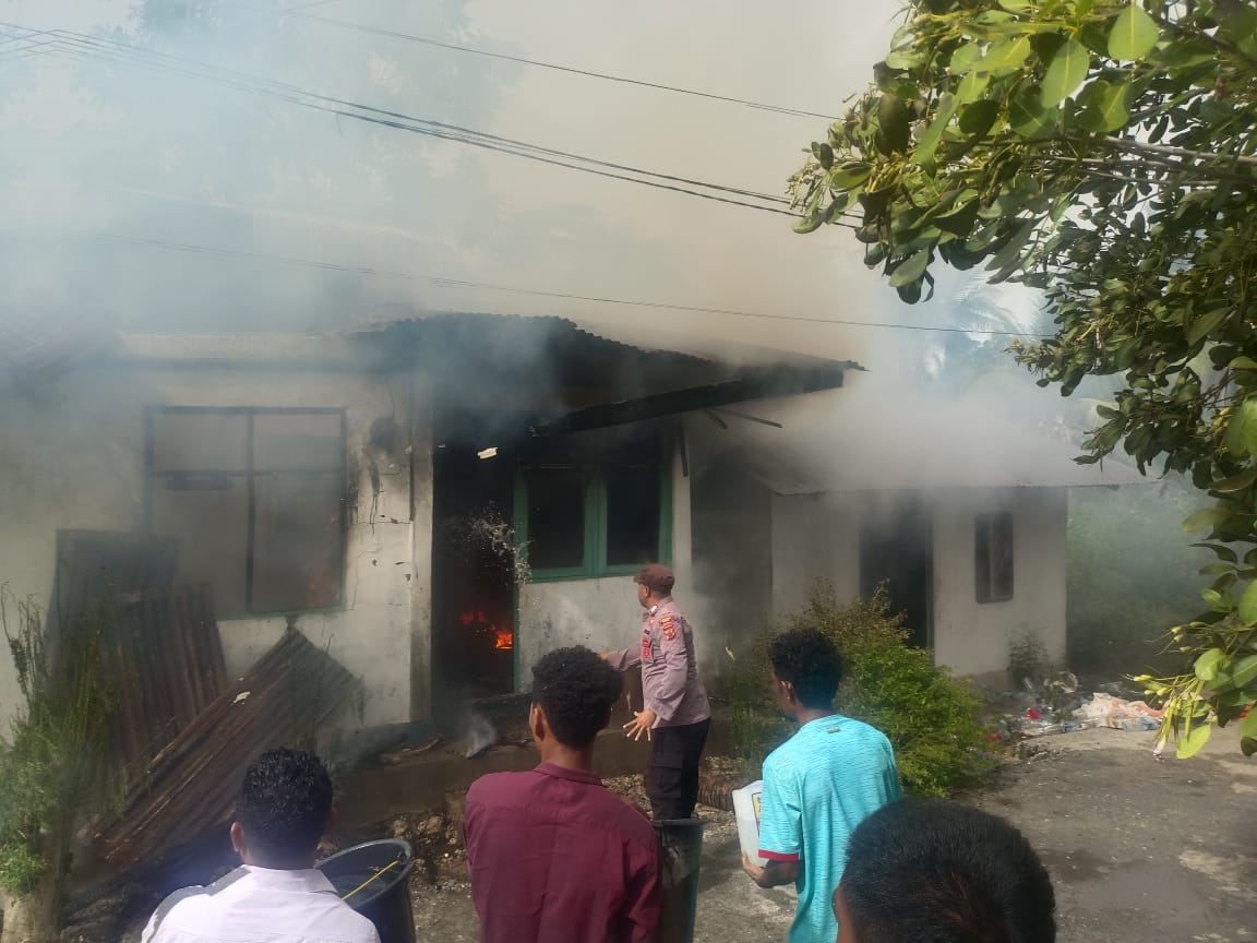 AMBON (info-ambon.com)-Kepolisian dari Pospol Wetar Timur Polres Maluku Barat Daya (MBD) bersama warga setempat bergerak cepat membantu memadamkan kebakaran yang melanda rumah dinas Kepala UPTD Puskesmas Arwala, Kecamatan Wetar Timur, Kabupaten Maluku Barat Daya, Minggu pagi (12/10/2025).