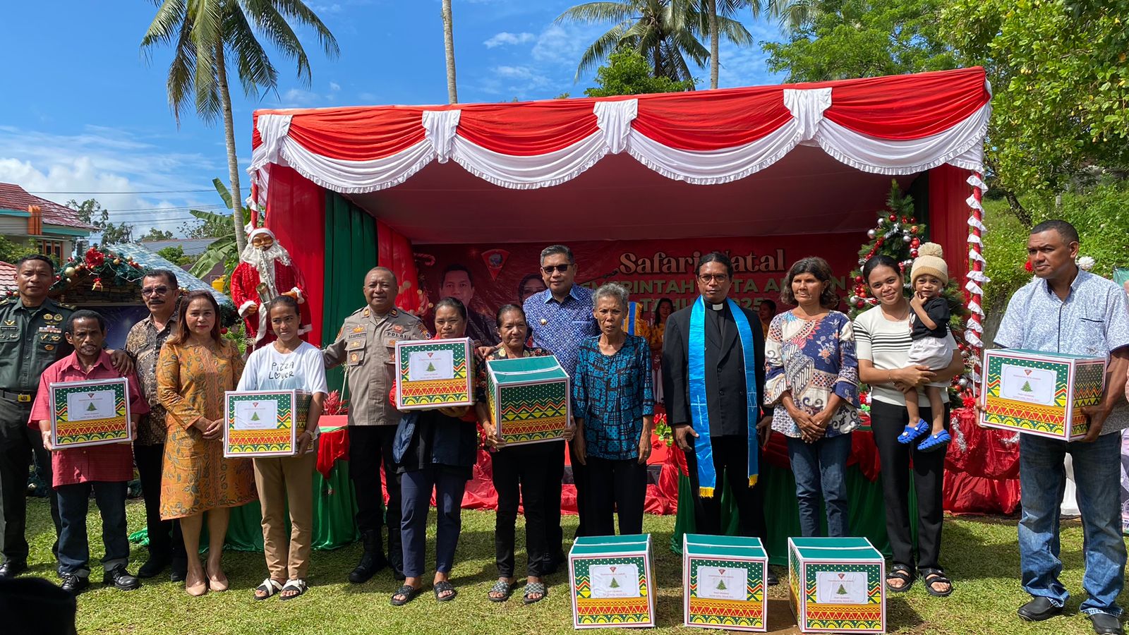 AMBON (info-ambon.com)-Pemerintah Kota (Pemkot) Ambon menyerahkan 100 paket bantuan sembako kepada perwakilan masyarakat di Kecamatan Baguala, Kota Ambon, dalam rangkaian Safari natal tahun 2025 yang digelar oleh Bagian Kesejahteraan Masyarakat (Kesra) Pemkot Ambon. Safari Natal yang dilaksanakan di Gedung SMTPI Eklesia Sektor Bethel, Jemaat Anugerah Halong, Kamis (4/12/2025).