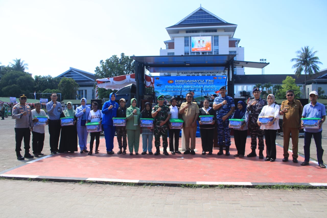 AMBON (info-ambon.com)-Wakil Gubernur Maluku, Abdullah Vanath, mewakili Gubernur Maluku membuka Acara Pembukaan Pasar Murah dan Pembagian Sembako dalam rangka Hari Ulang Tahun (HUT) ke-80 Tentara Nasional Indonesia (TNI), yang berlangsung di Lapangan Merdeka, Ambon, Senin (29/9/2025).