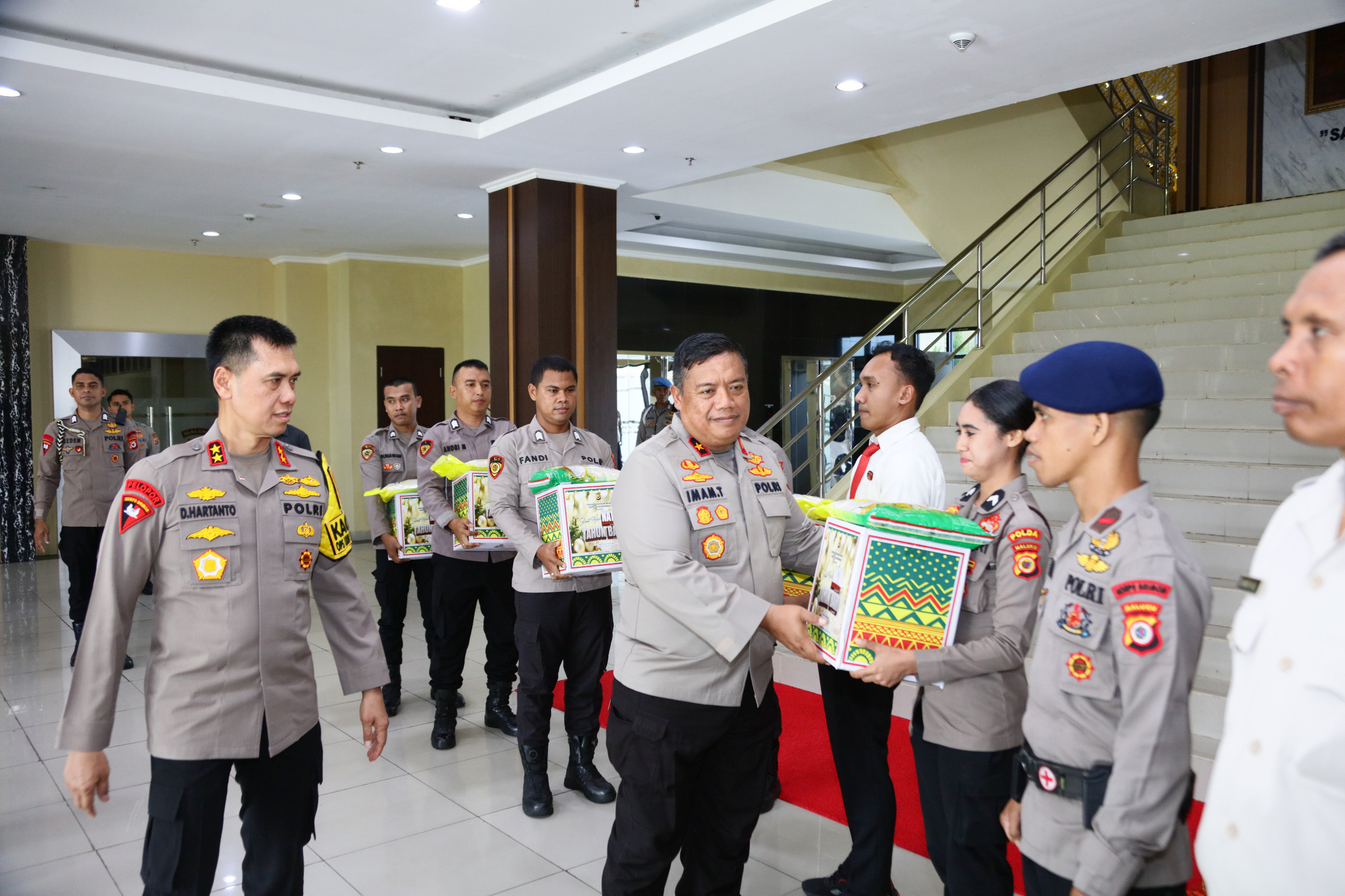 AMBON (info-ambon.com)-Kepala Kepolisian Daerah Maluku, Irjen Pol. Prof. Dr. Dadang Hartanto, S.H., S.I.K., M.Si menyerahkan bingkisan Natal secara simbolis kepada perwakilan personel Polda Maluku yang beragama Nasrani.