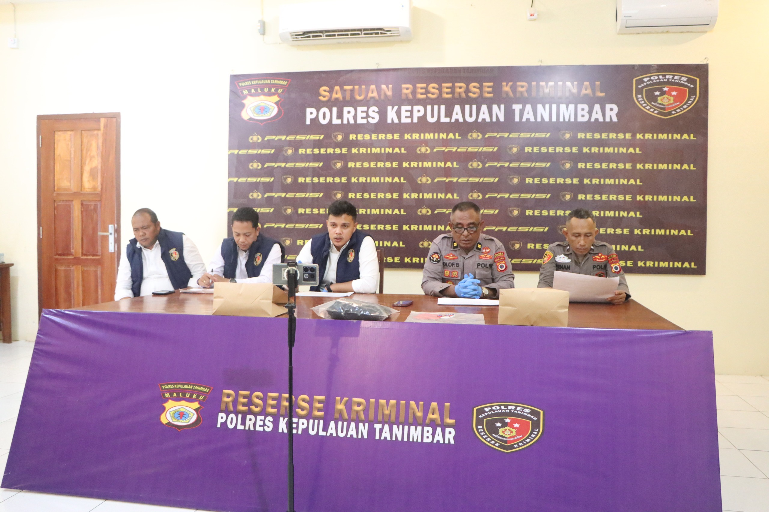 Penetapan tersangka tersebut disampaikan secara resmi dalam kegiatan Press Release yang digelar di Ruang Reskrim Mapolres Kepulauan Tanimbar, dipimpin langsung oleh Kasat Reskrim Polres Kepulauan Tanimbar, Iptu Bryantri Maulana, S.Tr.K., M.Si., serta dihadiri Kasi Humas Iptu Olofianus Batlayeri, awak media, dan personel Satreskrim.