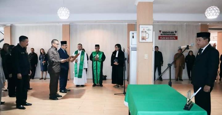 AMBON (info-ambon.com)- Sejumlah pejabat struktural eselon II dan III Lingkup Pemerintah Kota (Pemkot) Ambon dilantik oleh Penjabat Wali Kota Ambon, Bodewin Wattimena di Unit Layanan Administrasi (ULA) Balai Kota Ambon, Jumat (3/11/2023).