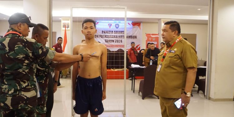 AMBON (info-ambon.com)- Sebanyak 58 Siswa/i SMA/SMK se- derajat mengikuti Tahapan Tes Kesehatan dan Postur Tubuh dalam seleksi Calon Pasukan Pengibar Bendera (Paskibra) pada upacara Kemerdekaan 17 Agustus 2024 mendatang di salah satu hotel di Kota Ambon, Selasa (5/3/24).
