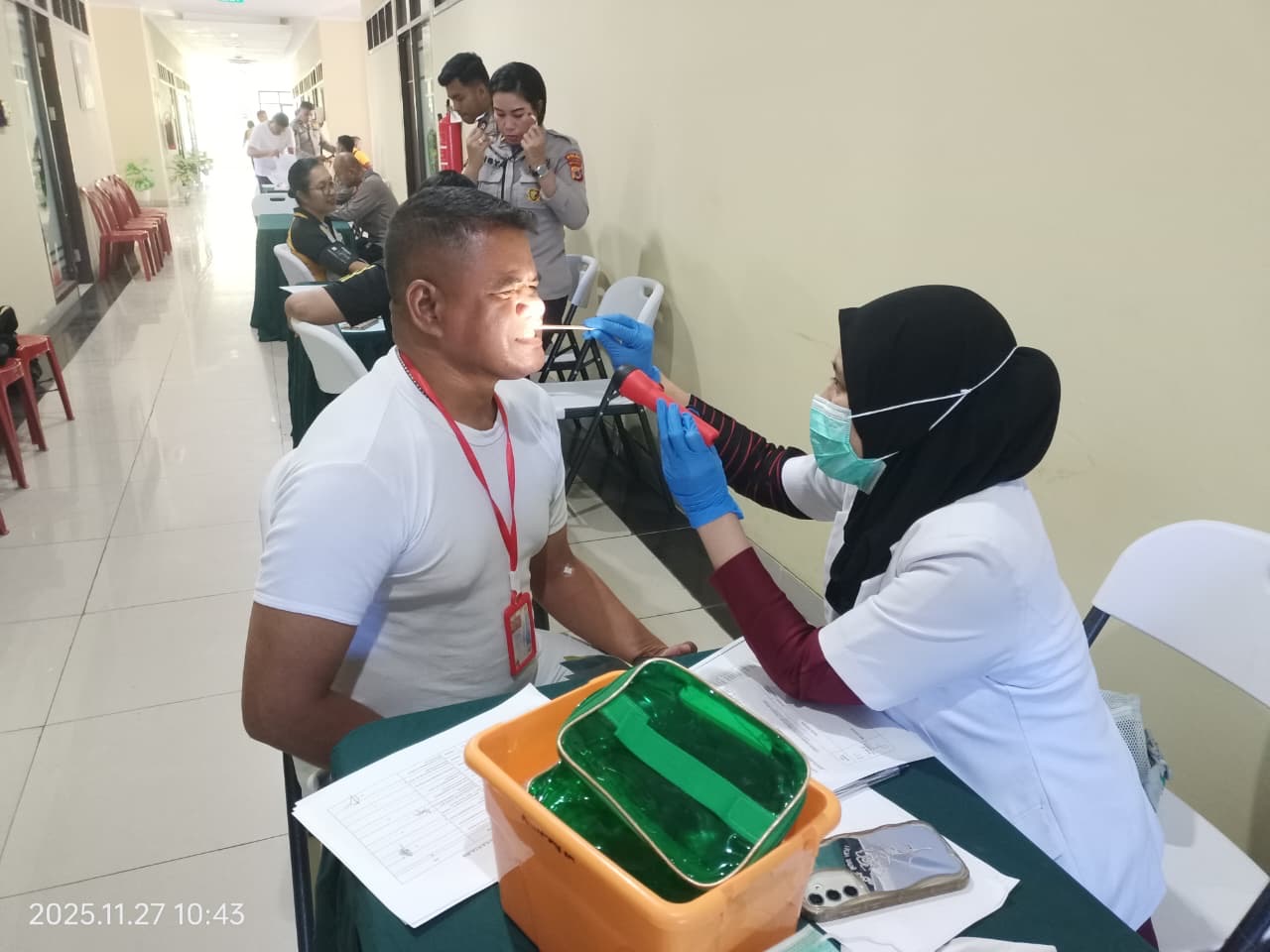 AMBON (info-ambon.com)- Sebanyak 29 personel Polda Maluku yang mengikuti Seleksi Sekolah Pimpinan Pertama (Sespima) Polri menjalani pemeriksaan kesehatan (Rikes), Kamis (27/11/2025).