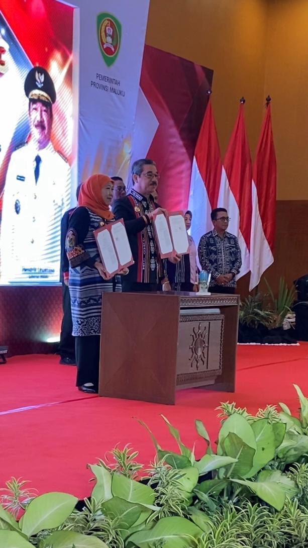 AMBON (info-ambon.com)-Kegiatan Misi Dagang dan Investasi Pemerintah Provinsi Maluku dan Jawa Timur, yang dibuka oleh Gubernur Maluku Hendrik Lewerissa dan Gubernur Jawa Timur Khofifah Indar Parawansa, tadi pagi di Ballroom The Natsepa Resort and Conference Center, Kecamatan Salahutu, Maluku Tengah, Rabu (23/4/2025), capai nilai transaksi Rp. 459.501.014.000.