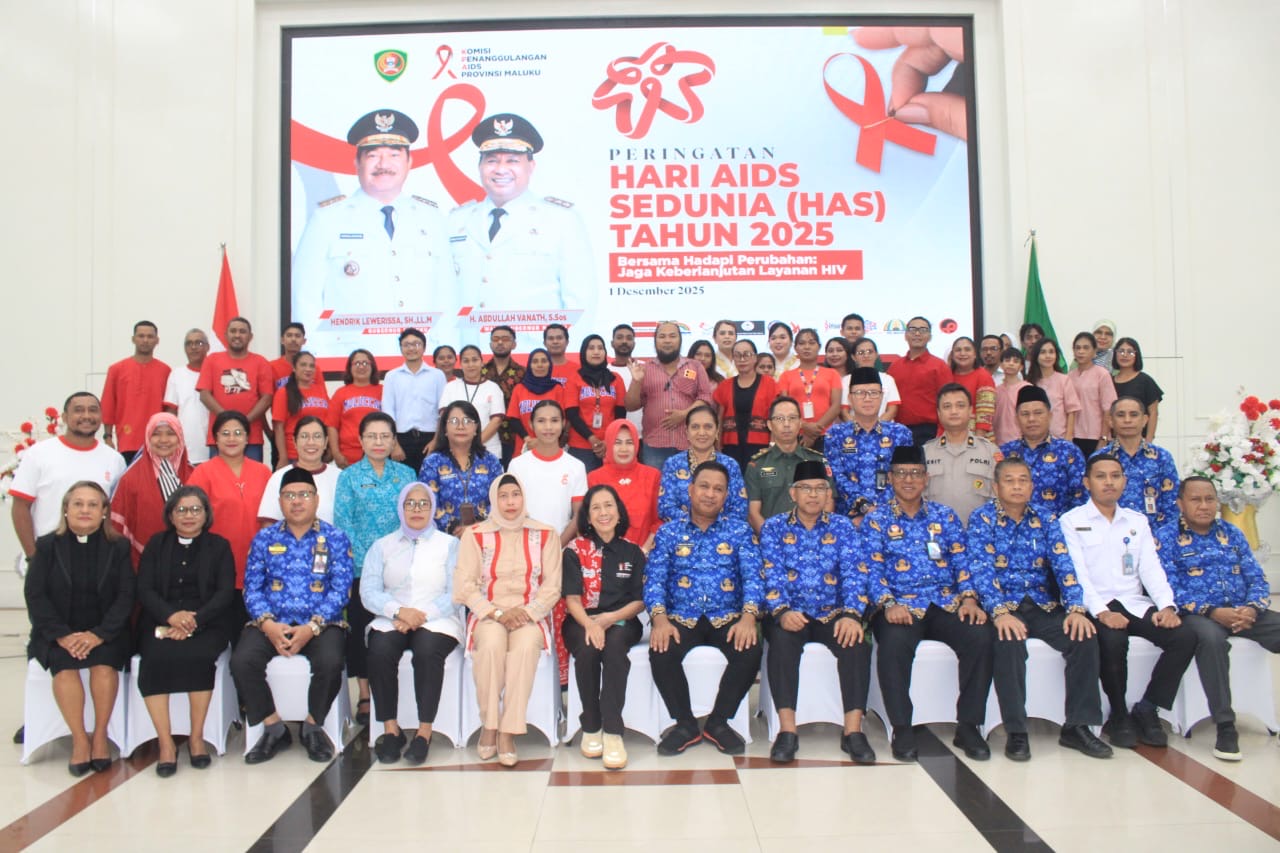 AMBON (info-ambon.com)- Wakil Gubernur Maluku, Abdullah Vanath, secara resmi membuka Peringatan Hari AIDS Sedunia Tahun 2025 yang berlangsung di Lantai 7 Kantor Gubernur Maluku, Senin (1/12/2025). Mengusung tema “Bersama Hadapi Perubahan: Jaga Keberlanjutan Layanan HIV”, kegiatan ini menjadi momentum penting untuk memperkuat upaya kolektif menanggulangi penyebaran HIV/AIDS di Maluku dan Indonesia.