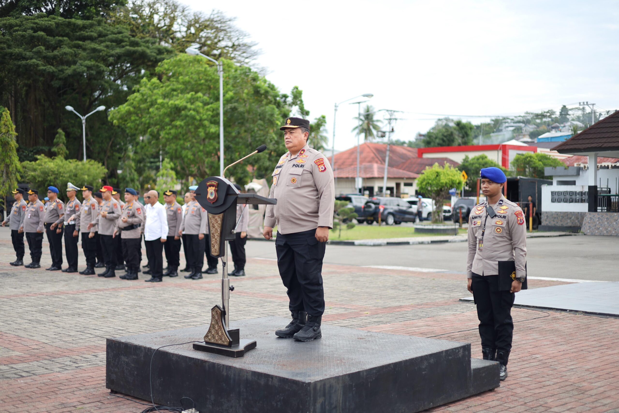 Apel yang digelar di lapangan Letkol Pol (Purn) Chr. Tahapary, Tantui, Kota Ambon, ini dipimpin langsung oleh Wakapolda Maluku Brigjen Pol Imam Thobroni S.I.K., M.H.