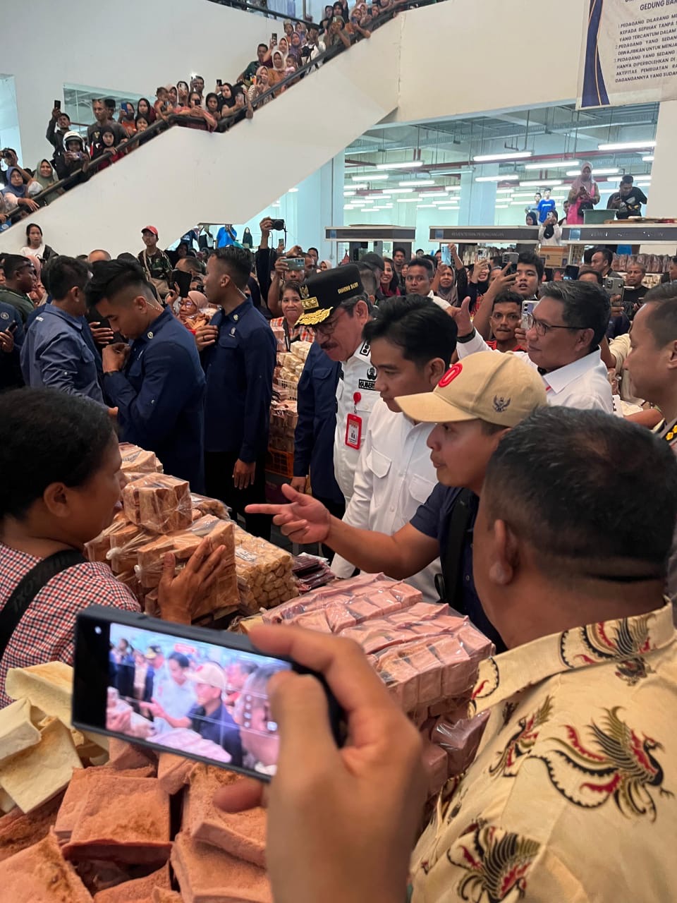 Kedatangan Wapres Gibran disambut antusias oleh ribuan pedagang Pasar Mardika. Mereka berdesakan demi bisa berjabat tangan langsung dengan orang nomor dua di Indonesia tersebut.