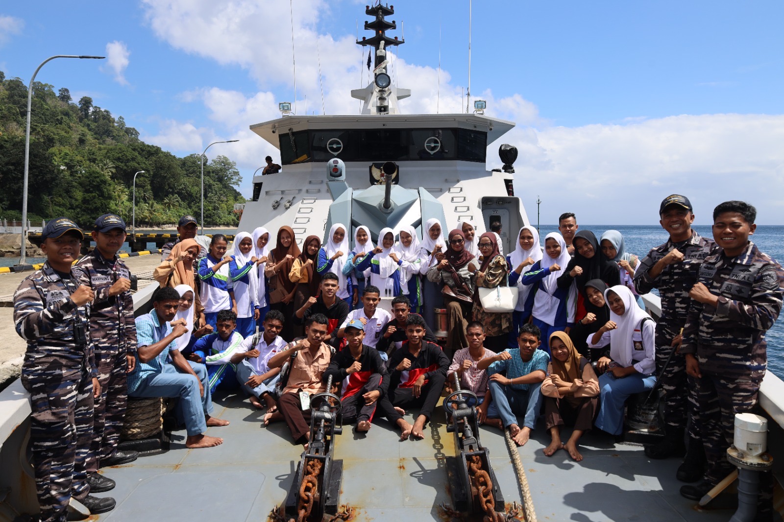 Salah satu momen yang paling menarik bagi masyarakat, terutama pelajar, adalah kesempatan mengunjungi kapal perang KRI Bawal-875. Sebanyak 30 siswa dari SMA Negeri 17 Seram Bagian Barat mengikuti kegiatan open ship yang bertujuan memperkenalkan peran TNI AL serta menumbuhkan wawasan kebangsaan dan maritim.