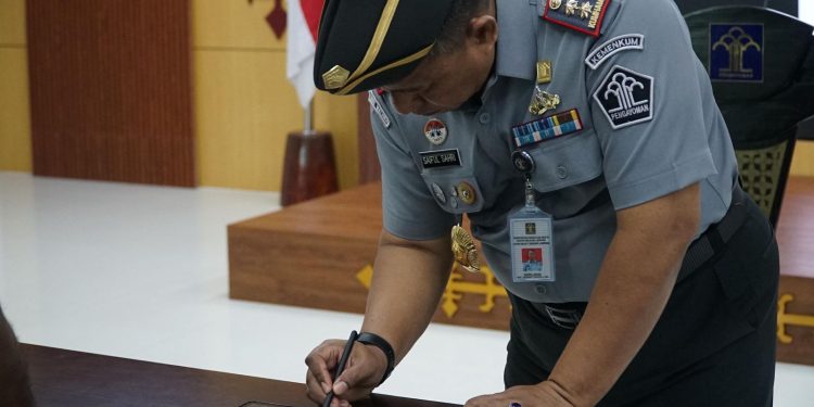 AMBON (info-ambon.com)-Setahun menyandang predikat Wilayah Bebas dari Korupsi (WBK) Kepala Kantor Wilayah (Kakanwil) Kementerian Hukum (Kemenkum) Maluku Saiful Sahri, hari ini, Senin (20/1/2025) meminta jajaran mantapkan komitmen wujudkan pemerintahan yang bersih dan melayani melalui penandatanganan Perjanjian Kinerja, Komitmen Bersama Pembangunan Zona Integritas, dan Pakta Integritas.